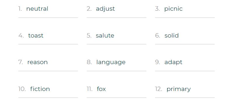 このリストの各単語は、他の単語と間違える可能性が最小限になるように選ばれています。例えば、同じ4文字で始まる単語は2つとしてないので、技術的には最初の4文字が読めればウォレットを復元することができます。